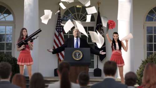White House Cheerleading Squad Loads Epstein Files In T-Shirt Cannons And Launches Them Into Crowd (Satire)