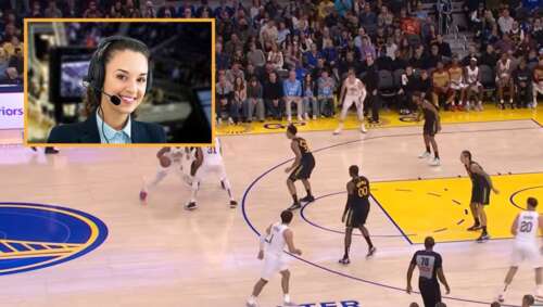 CLEVELAND, OH — In a tragedy bemoaned by sports fans across the nation, a perfectly good basketball game between Golden State Warriors and Cleveland Cavaliers was completely ruined by a lady announcer.
