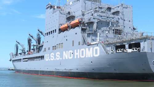 WASHINGTON, D.C. — The United States Navy announced this morning that the USS Harvey Milk will be officially renamed the USS No Homo.