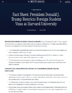 JUST IN – Trump signs proclamation to restrict the entry of “nonimmigrant” foreign students at Harvard. https://www.whitehouse.gov/fact-sheets/2025/06/fact-sheet-president-donald-j-trump-restricts-foreign-student-visas-at-harvard-university/ @disclosetv