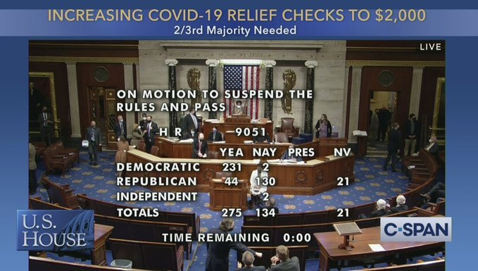 Occidental Dissent - Dec 28th 2020 11:31pm EST U.S. House, in 275-134 vote, passed bill for $2,000 individual direct payments. House considered bill under expedited “suspension of the rules” procedure requiring a 2/3rds majority for passage.D 231-2R 44-130I 0-2— Greg Giroux (@greggiroux) December 28, 2020 How did your congressman vote on $2,000? Mine voted “nay”https://t.co/496WI8hySp— Hunter Wallace (@MisterBlackPill) December 29, 2020 Here is […]