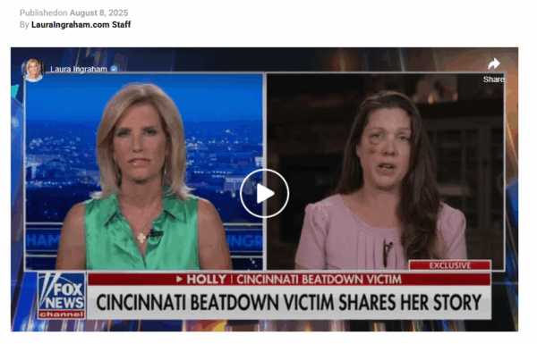 American Renaissance - Aug 15th 2025 6:27pm EDT This video is available on Rumble, Bitchute, Odysee, Telegram, and X. Everyone has heard of “Holly,” the Cincinnati woman who was knocked flat by blacks on July 26 after a Jazz festival. She has spoken publicly, including an interview with Laura Ingraham, in which she said she thought the attack was racially motivated, but she […]