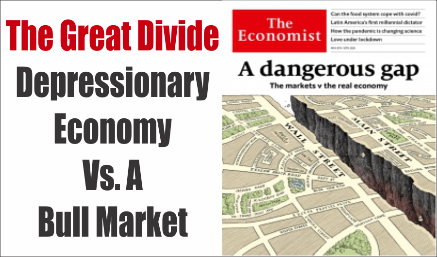 ZeroHedge - May 9th 2020 4:30pm EDT Depressionary Economy Versus A Bull Market – Both Can’t Be Right! Authored by Lance Roberts via RealInvestmentAdvice.com, The Great Divide There is currently a “Great Divide” happening between the near “depressionary” economy versus a surging bull market in equities. Given the relationship between the two, they both can’t be right. Depressionary Economy As noted by Jay Denton from Thinkwhy: “April’s […]