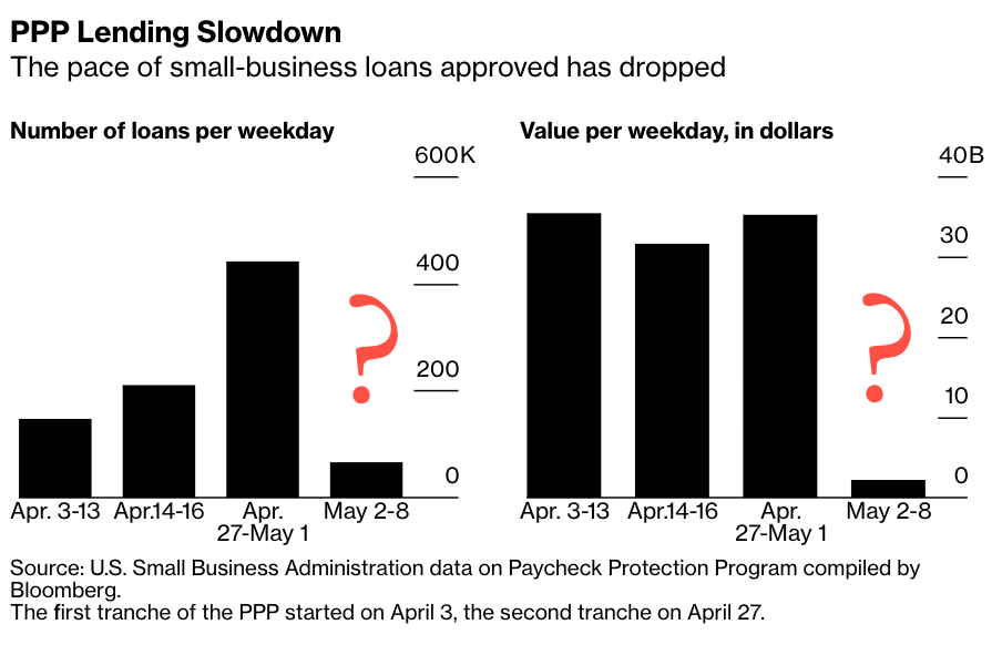 ZeroHedge - May 9th 2020 4:55pm EDT Questions Swirl As To Why Small-Business Emergency Lending Drops It’s becoming increasingly clear that a quick economic recovery is not in the cards this year. That’s a very big problem for struggling small businesses, who need emergency loans from the coronavirus relief program to stay afloat. As Bloomberg reports, the pace of processing loans from the Paycheck Protection Program […]
