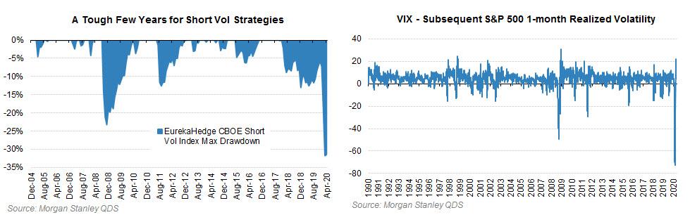 ZeroHedge - May 9th 2020 5:20pm EDT Morgan Stanley: The Feedback Loop Mechanism That Levitated Markets In Recent Years Is Broken By Chris Metli of Morgan Stanley Quantitative Derivative Solutions The March 2020 equity selloff ushered a huge volatility shock that caused unprecedented losses for short volatility strategies. The impact is likely bigger than just a one-time hit to P/Ls though – […]