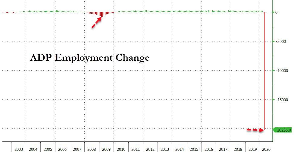 ZeroHedge - May 6th 2020 8:19am EDT “Unprecedented” – Companies Slashed Over 20 Million Jobs In April, ADP Given the fact that over 30 million Americans have filed for initial jobless claims in the last six weeks, it is perhaps no surprise that economists expected a 20.5 million ADP job loss in April. In fact, silver lining, the number ‘beat’ with 20.236 […]
