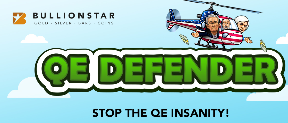 ZeroHedge - May 3rd 2020 9:30pm EDT QE Defender – Stop The QE Insanity: Helicopter Money And The Risk Of Hyperinflation Submitted by BullionStar.com, In 2016 at FreedomFest in Las Vegas, BullionStar first launched the QE Defender game. With the central banks going all in on debasement of money by all means of quantitative easing and money printing, the QE Defender Game is […]
