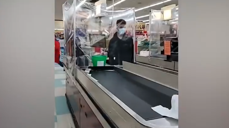 Is This The Post-COVID-19 World? Cashiers Work Inside Plastic Tents At Supermarket