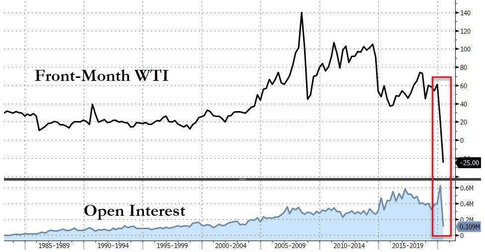 ZeroHedge - Apr 20th 2020 4:00pm EDT The Market Is Breaking… Everywhere Today was historic… …for a number of reasons. 1) Front-month oil traded at an utterly irrational and unprecedented negative $43 intraday (this was not about storage into settlement, this was forced selling into settlement, then notice the bounce, and then later more selling.) 2) Oil’s prompt-spread exploded to a record […]