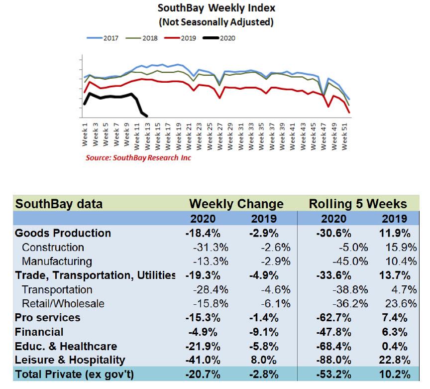 ZeroHedge - Apr 1st 2020 9:25pm EDT 6.5 Million Initial Jobless Claims Tomorrow? Last week, when consensus was expecting a “modest” 281K initial jobless claims, we said that SouthBay Research’s Andrew Zatlin, who has regularly been the most accurate predictor of labor market prints, expected no less than 2.4 million initial jobless claims. He was off by a million: the actual number […]