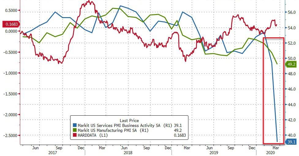 ZeroHedge - Mar 24th 2020 9:54am EDT US Services Economy Collapses At Record Pace, Signal 5% GDP Plunge Following disastrous PMI prints across Europe (and China last month), preliminary March US Manufacturing and Services data was expected to plunge notably into contraction (having already tumbled in February).. and they both did… US Manufacturing PMI dropped to 49.2 (contraction) – a 127-month low […]