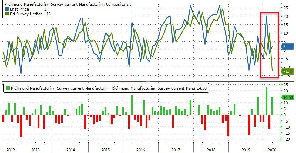 ZeroHedge - Mar 24th 2020 10:27am EDT Richmond Fed Business Survey Shockingly Rises… Here’s Why The Richmond Fed Business Survey smashed expectations today – printing an expansionary +2, from February’s -2 – massively better than the -13 print expected… Source: Bloomberg The reason for this shocking beat is not optimism… or a sign of a corner being turned… it is purely technical […]