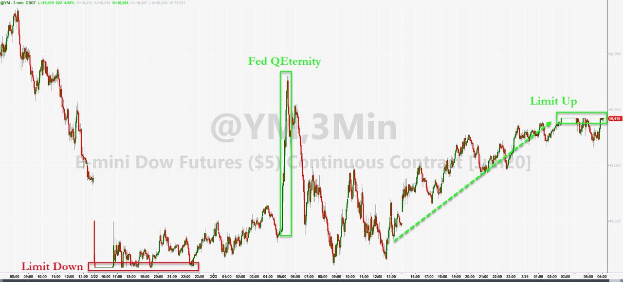 ZeroHedge - Mar 24th 2020 8:20am EDT S&P Futures Hit Limit Up As Dollar Tumbles, Gold Soars With the market losing all gains since the Trump election on Monday, on Tuesday we may see Dow 20,000 again today (assuming this rally continues). The last time Dow 20K hit: the start of 2017. One day after futures hit limit down to start the […]