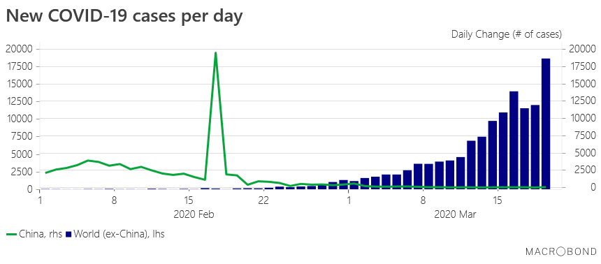 ZeroHedge - Mar 20th 2020 3:10pm EDT Chart Of The Week: New COVID-19 Cases Per Day Submitted by Christopher Dembik, Head of Macro Analysis, Saxo Bank You have probably seen this chart, or something similar, everywhere. It refers to the worldwide number of new COVID-19 cases per day. While there are no new reported cases in China, the coronavirus peak has certainly […]