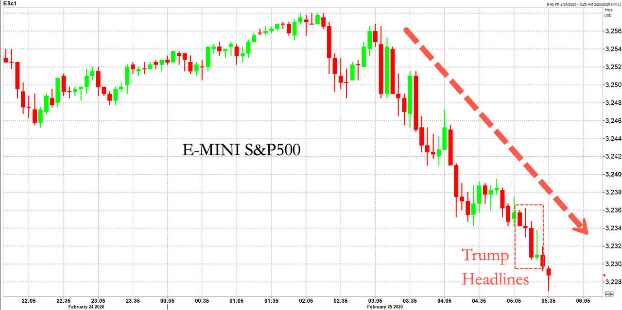 ZeroHedge - Feb 25th 2020 5:53am EST Trump Warns Of Stock Market Crash “Like You Never Have Seen Before” If A Democrat Wins The White House Every time the stock market has a sizeable downdraft, President Trump blames the Federal Reserve or the Democrats. And with Bernie Sanders’ win in Nevada still looming large over the market, and futures struggling to shake […]