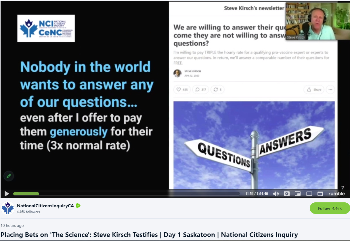 Steven Kirsch - Apr 21st 2023 9:38pm EDT Here’s my testimony at the National Citizen’s Inquiry in Canada: My slides Here are the slides I used. Red-shift Zoom red-shifts my video feed. Here’s what I really look like in the feed from vMix: Does anyone else get their video feed red-shifted by zoom? Zoom is the only app that does this with my […]