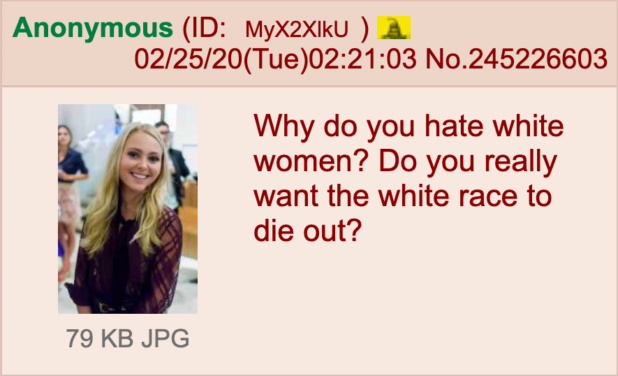 Daily Stormer - Feb 25th 2020 8:00pm EST Andrew Anglin Daily Stormer February 26, 2020 I can’t post on /pol/ because they have banned all IP addresses from my home country of Nigeria. But I see things sometimes and want to post. Like this: That had this image – the idealized image that white knights have of sluts: The responses were all playing […]
