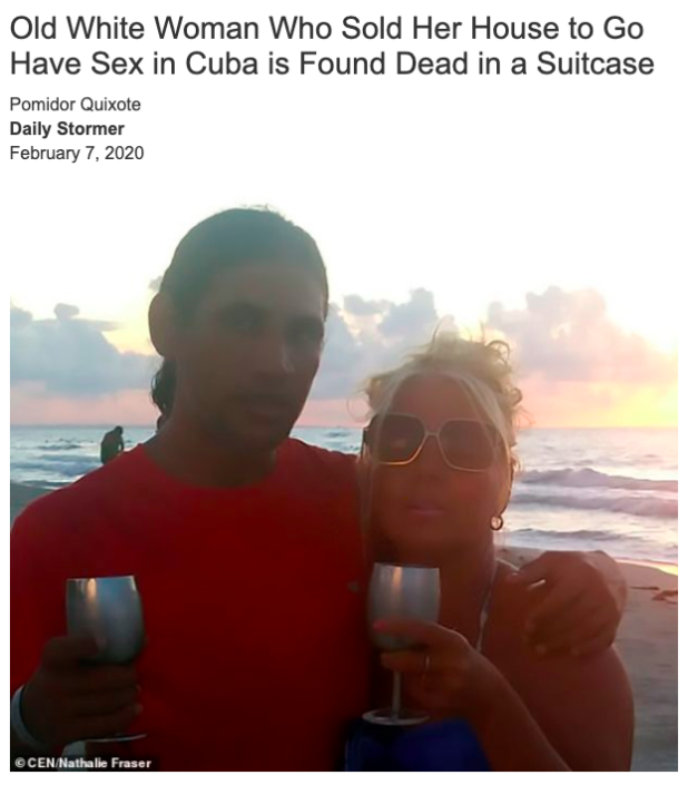 Daily Stormer - Feb 8th 2020 8:16pm ESTAndrew Anglin Daily Stormer February 8, 2020 The other day, I was sitting behind a nasty old white woman at a cafe in the center of Lagos. I could tell she was American. Which is rare, because most white American females go to Cuba or some other Latin place for their sex tours. Most of […]