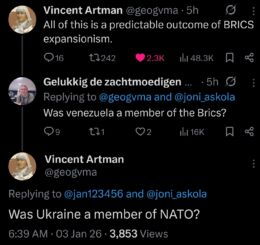 Counter Currents - Jan 12th 2026 9:00am EST 1,321 words Trump’s raid to capture Nicolas Maduro was well-executed. While the situation remains open-ended, Trump has made it clear that he is following Hegseth’s vow to avoid mission creep and open-ended commitments. And it advanced American interests. It’s about the oil. And it was a refreshing break from the farce of international law. Shortly […]