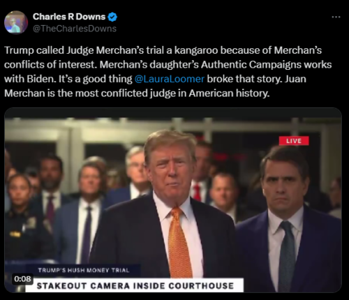 Laura Loomer - May 21st 2024 8:09pm EDT As he entered and left court Tuesday, President Trump highlighted Judge Merchan’s conflicts of interest. Laura Loomer was the first to report that Judge Merchan’s daughter, Loren, is the partner and part-owner of Authentic Campaigns, a firm whose “featured client “is the Biden-Harris Campaign. Other Authentic Campaign clients include New Jersey Senator Cory Booker, who posted on […]