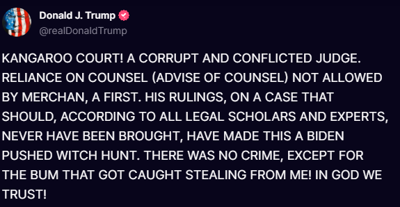 Laura Loomer - May 29th 2024 3:53pm EDT Wednesday was a historic day in the United States. For the first time, an American President was dragged into court for jury instruction by political operatives loyal to his political opponent in a case that could jail him months before the election. Before arriving in court, President Trump posted on TruthSocial about Judge Merchan’s conflicts […]