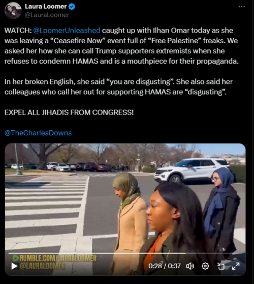 EXCLUSIVE VIDEO: Hamas Propagandist Ilhan Omar Calls Loomer Unleashed “Disgusting” For Pointing Out Her Hypocrisy in Calling Trump Supporters Extremists