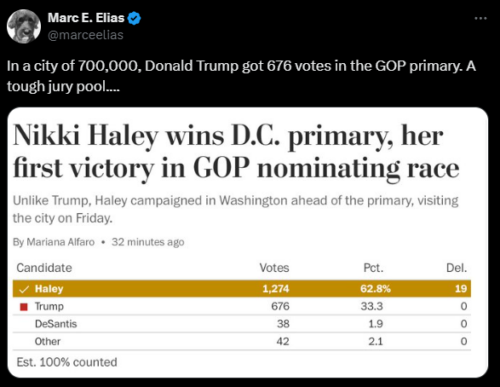 Daily Stormer - Mar 4th 2024 11:10pm EST Of course she would win the DC primary. It doesn’t mean anything. But the media acts like it means something. RT: Republican presidential hopeful Nikki Haley defeated former US President Donald Trump in her party’s Washington DC primary on Sunday. While the win denies Trump a clean sweep of the primaries, her path to the […]