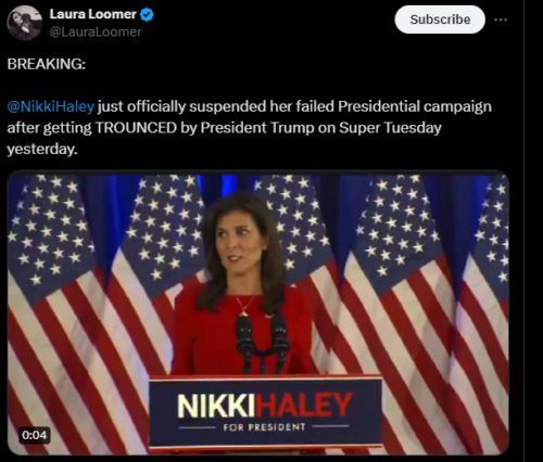 Laura Loomer - Mar 6th 2024 6:44pm EST America First policy trumped globalism as Nikki Haley announced Wednesday that she is dropping out of the Republican Party Primary. Loomer Unleashed reported in depth about Haley’s Democrat funding and pro-globalist policies. With Haley and the globalist wing of the GOP set to disappear into irrelevancy, we thought it would be fun to highlight some […]