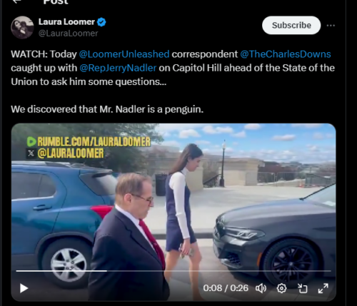 Laura Loomer - Mar 7th 2024 8:24pm EST In an exclusive video taken on Capitol Hill Thursday, high-ranking Congressional Democrat Jerry Nadler said it was not hypocritical that Congressional Democrats, led by J6 Committee Member Jamie Raskin, are pushing legislation to remove President Trump from the ballot despite the Left lecturing Americans on the importance of democracy. Raskin announced his bill to remove […]