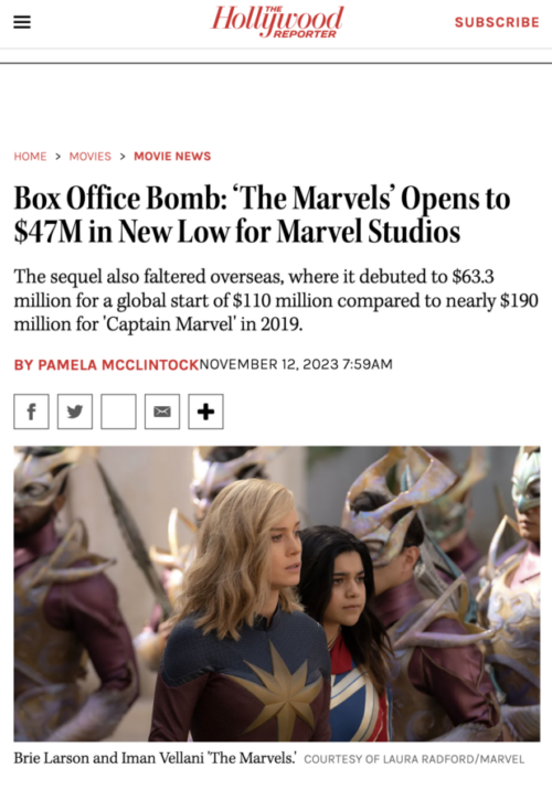Vaginal “The Marvels” (Captain Marvel 2) Marks Worst Ever Opening Weekend for an MCU Film