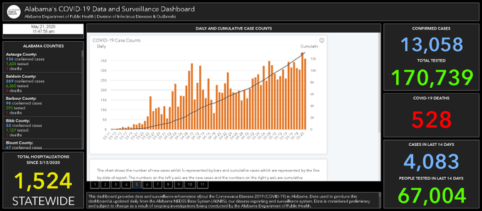Occidental Dissent - May 21st 2020 9:40pm EDTAlabama +544 Texas +1,856 Florida +1,204 Louisiana +1,118 Virginia +1,229 Arkansas +455 Here are the latest numbers: The South: 5/21 MS: 11,967 cases, 570 deaths AL: 12,744 cases, 517 deaths SC: 9,175 cases, 407 deaths GA: 39,801 cases, 1,697 deaths TX: 51,651 cases, 1,423 deaths FL: 47,471 cases, 2,096 deaths LA: 35,316 cases, 2,608 deaths […]