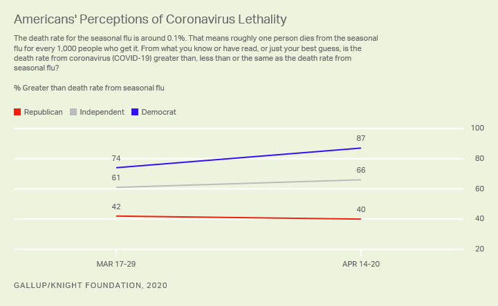 Occidental Dissent - May 26th 2020 1:53pm EDTThis hardly comes as a surprise. Gallup: “WASHINGTON, D.C. — The novel coronavirus pandemic provides a view into the deep partisan divisions that have persisted despite the unfolding national crisis. Two recent Gallup/Knight Foundation surveys find Americans’ understanding about the coronavirus is strongly shaped by partisan affiliation and news consumption habits, especially when basic facts […]
