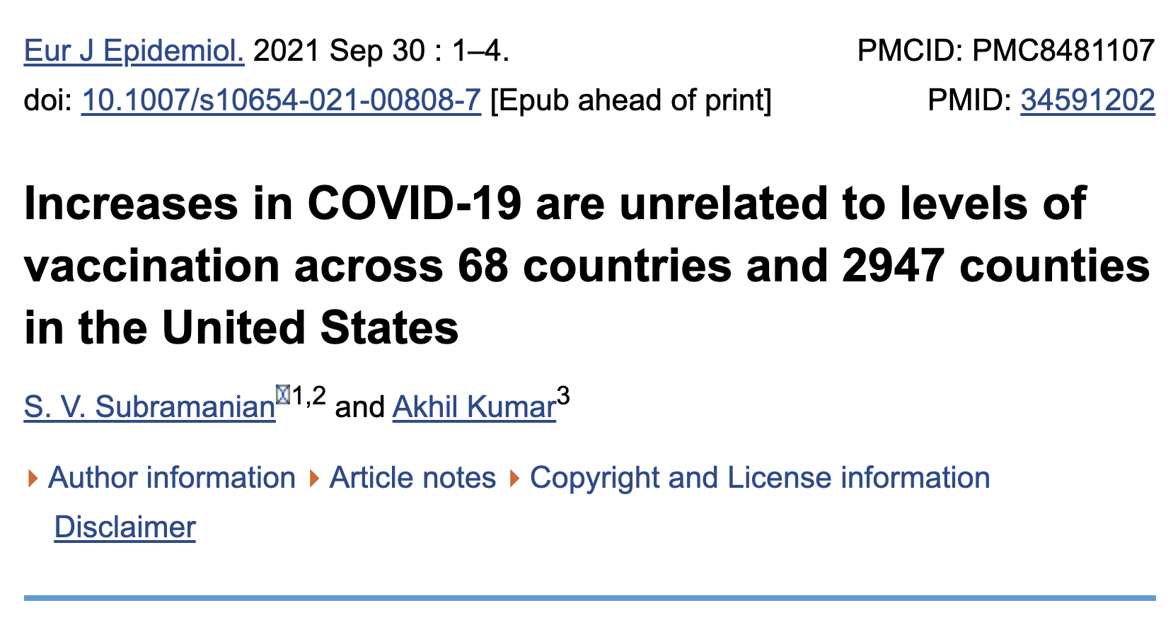 Daily Stormer - Oct 19th 2021 11:16am EDT This study is from September. But it’s probably relevant. It’s called “Increases in COVID-19 are unrelated to levels of vaccination across 68 countries and 2947 counties in the United States.” From the “Findings” section: At the country-level, there appears to be no discernable relationship between percentage of population fully vaccinated and new COVID-19 cases in […]