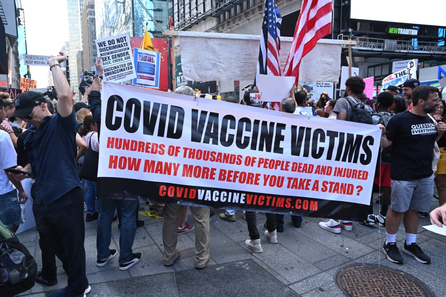 Anti-Vaxers Flood Times Square Opposing Psycho Jew Vax Agenda