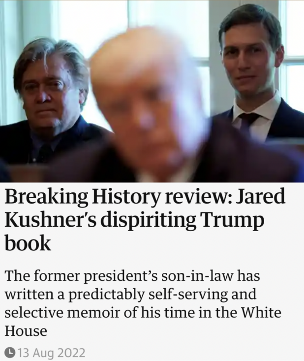 Daily Stormer - Aug 15th 2022 3:46am EDT I just wanted to point out how bizarre this book review from the Guardian I just read part of is. I didn’t read the whole thing, but here are the first few paragraphs of “Breaking History review: Jared Kushner’s dispiriting Trump book” by Lloyd Green: The House January 6 committee hearings depict Donald Trump as […]