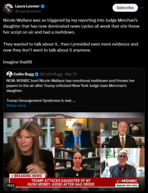 Nicolle Wallace Melts Down on MSNBC as Loomer Presents More Evidence Proving Judge Merchan’s Daughter’s Anti-Trump Bias