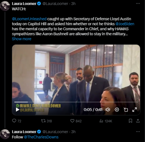 Laura Loomer - Feb 29th 2024 3:36pm EST Joe Biden’s Secretary of Defense, Lloyd Austin, refused to say whether Joe Biden had the mental capacity needed to serve as President of the United States. Austin also declined comment on why unvaccinated U.S. military members were fired from the military while people like Aaron Bushnell were allowed to continue serving. Austin ignored Loomer Unleashed’s […]