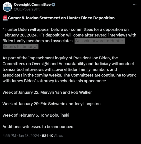 Hunter to Give Deposition on Wednesday as Questions About His Drug Use and Joe’s Mental Competency Swirl Around the Biden Family