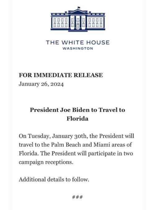 Democrat Fundraiser Crawl Coming to Florida as Democrat Mega Donnors Host January 30th and 31st Events for Joe Biden and Nikki Haley in Palm Beach and Miami