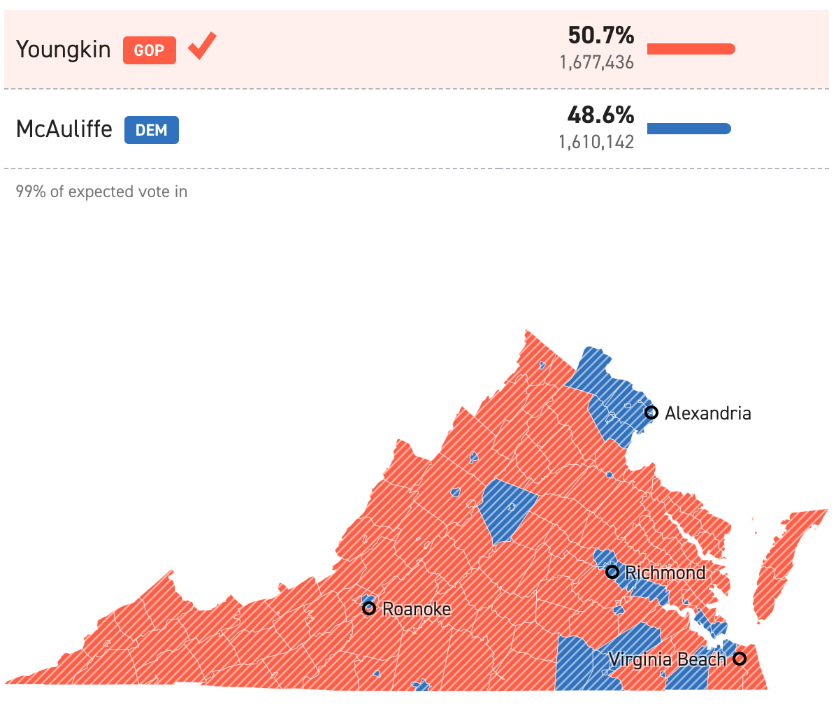 Youngkin Wins Virginia and Jersey Too Close to Call as Things Get Dumber
