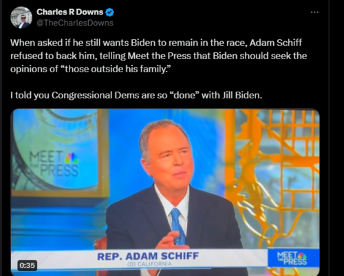 Laura Loomer - Jul 7th 2024 9:04pm EDT Congressional Democrats spent their Sunday turning on Joe Biden. First, Adam Schiff joined Meet the Press, saying that “Biden needs to consider for his own sake if he is the best to beat Donald Trump.” Given his history, Schiff’s threats to Biden should not be taken lightly. Then, during a Sunday afternoon call with Democrat […]