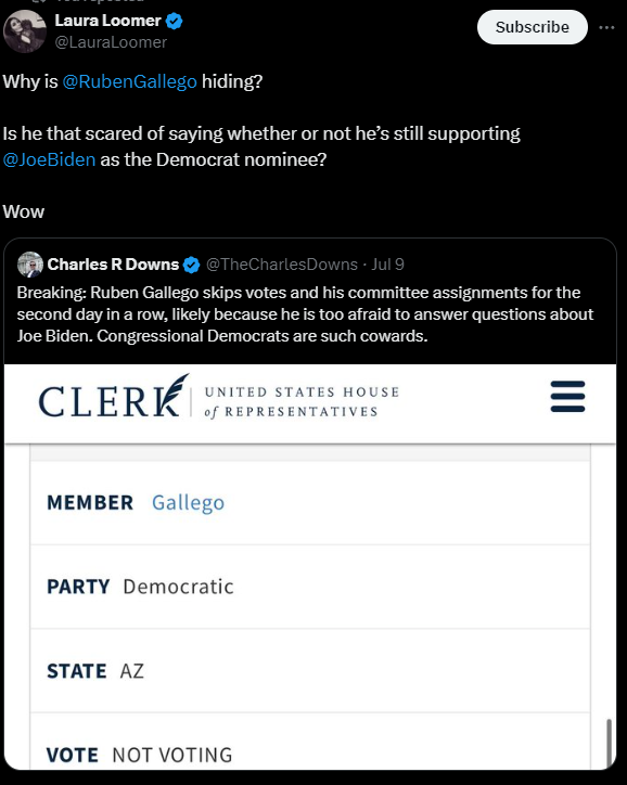 Laura Loomer - Jul 11th 2024 6:56am EDT Joe Biden’s mental decline has created a tough week for United States Senate candidates Ruben Gallego and Jon Tester. Biden’s cognitive decline and horrific policies have resulted in current polling showing President Trump leading in Gallego and Tester’s home states of Arizona and Montana, causing them to hide in their offices, resulting in skipped votes […]