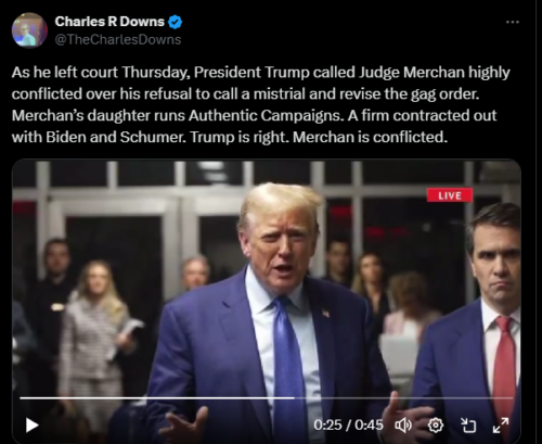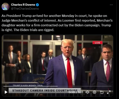 Laura Loomer - May 9th 2024 5:50pm EDT Judge Merchan’s conflict of interest was on full display again on Thursday as he denied President Trump’s motion to declare a mistrial and reverse the gag order due to Stormy Daniels changing testimony. As Trump walked into court on Thursday, he called Judge Merchan “totally conflicted.” While in court, Stormy Daniels admitted she signed the […]