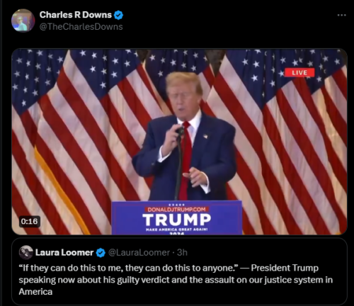 Laura Loomer - May 31st 2024 3:15pm EDT President Trump was charismatic and bold during Friday’s press conference following his “conviction” Thursday. Trump spoke about the Left’s “Get Trump“ scams, starting with Judge Merchan, whom Trump called a “tyrant”. Laura Loomer first reported that Authentic Campaigns, a firm run by Judge Merchan’s daughter, Loren, has a client list consisting of elite Democrats like the […]