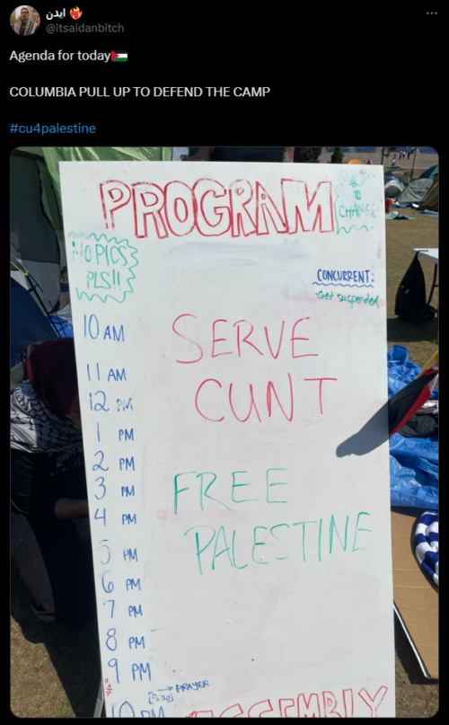 Laura Loomer - May 1st 2024 3:52pm EDT Aidan Parisi, the son of Senior Biden-Blinken State Department official Elizabeth Daughtrey, is one of the leaders of the pro-Hamas riots holding Columbia University hostage. Parisi’s X account, @itsaidanbitch, has been writing posts encouraging violence across Columbia’s campus. Parisi’s actions got him suspended from Columbia in April, but the university never enforced the suspension, proving some people […]