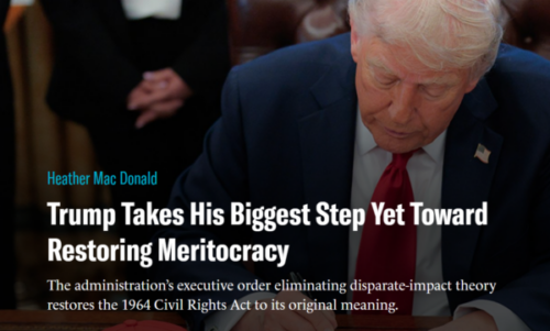 American Renaissance - May 1st 2025 5:44pm EDT This video is available on Rumble, Bitchute, Odysee, Telegram, and X. Last week, Heather Mac Donald, who is one of the best people in mainstream media, wrote this: “Trump Takes His Biggest Step Yet Toward Restoring Meritocracy.” He had just signed this executive order, which bans a pernicious legal doctrine called “disparate impact.” This terrible, […]