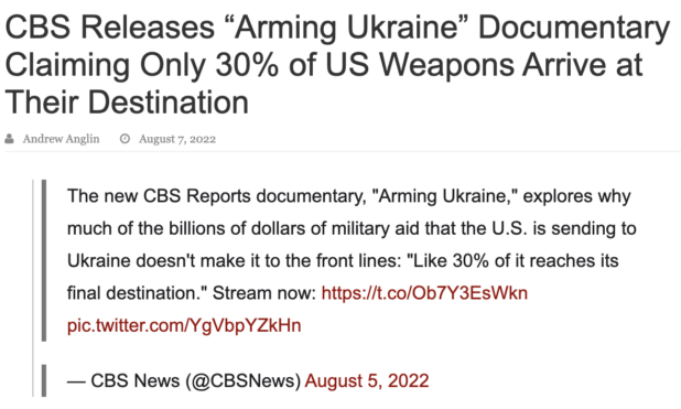 CBS Deletes “Arming Ukraine” Documentary, Says the US Government Told Them To