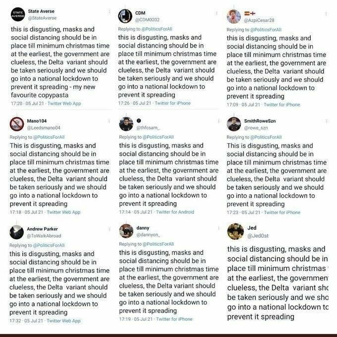 Daily Stormer - Jul 9th 2021 4:25am EDT I thought the people were sick of masks and social-distancing and all of the rest of this lunacy. But then I checked Twitter. It looks to me as though the people have spoken. Popular opinion is clear: we must never get our freedoms back. That is the meaning of democracy.