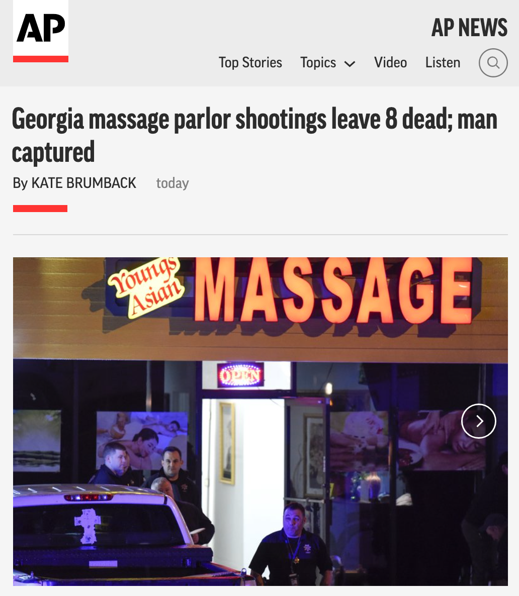 Georgia: White Guy Goes on Rampage, Shoots Up Three Asian Handjob Centers, Killing 8 Hookers
