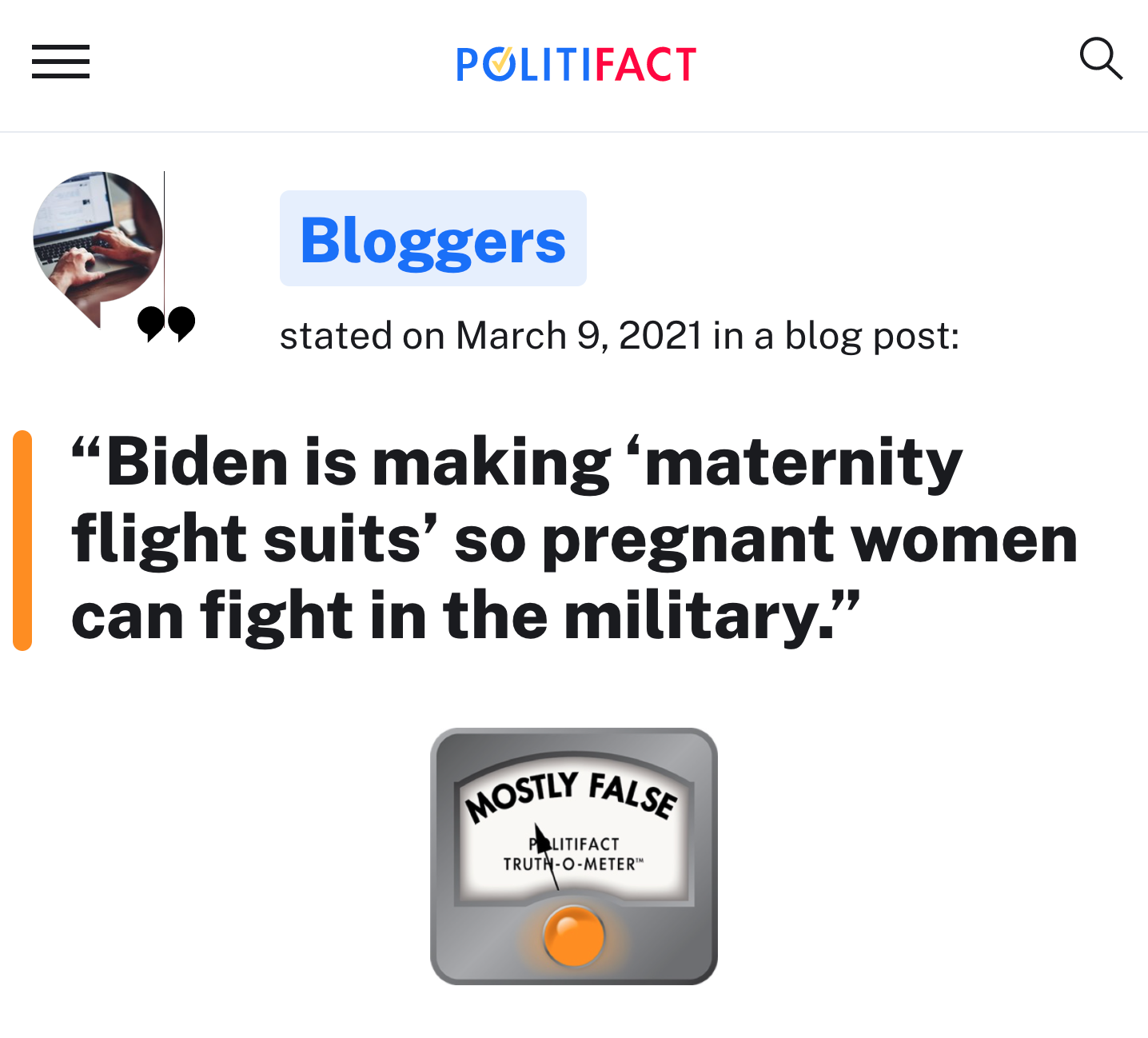 Here is a clip of Joe Biden on International Women’s Day saying the military is creating maternity flight suits for pregnant women in the military: pic.twitter.com/JtmGatOxy7“Maternity Flight Suits” Joe Biden should never ever be allowed to use the word “Intense” — KJR Molon (@KjrMolon) March 9, 2021 Here is the Politifact “fact check” of a […]